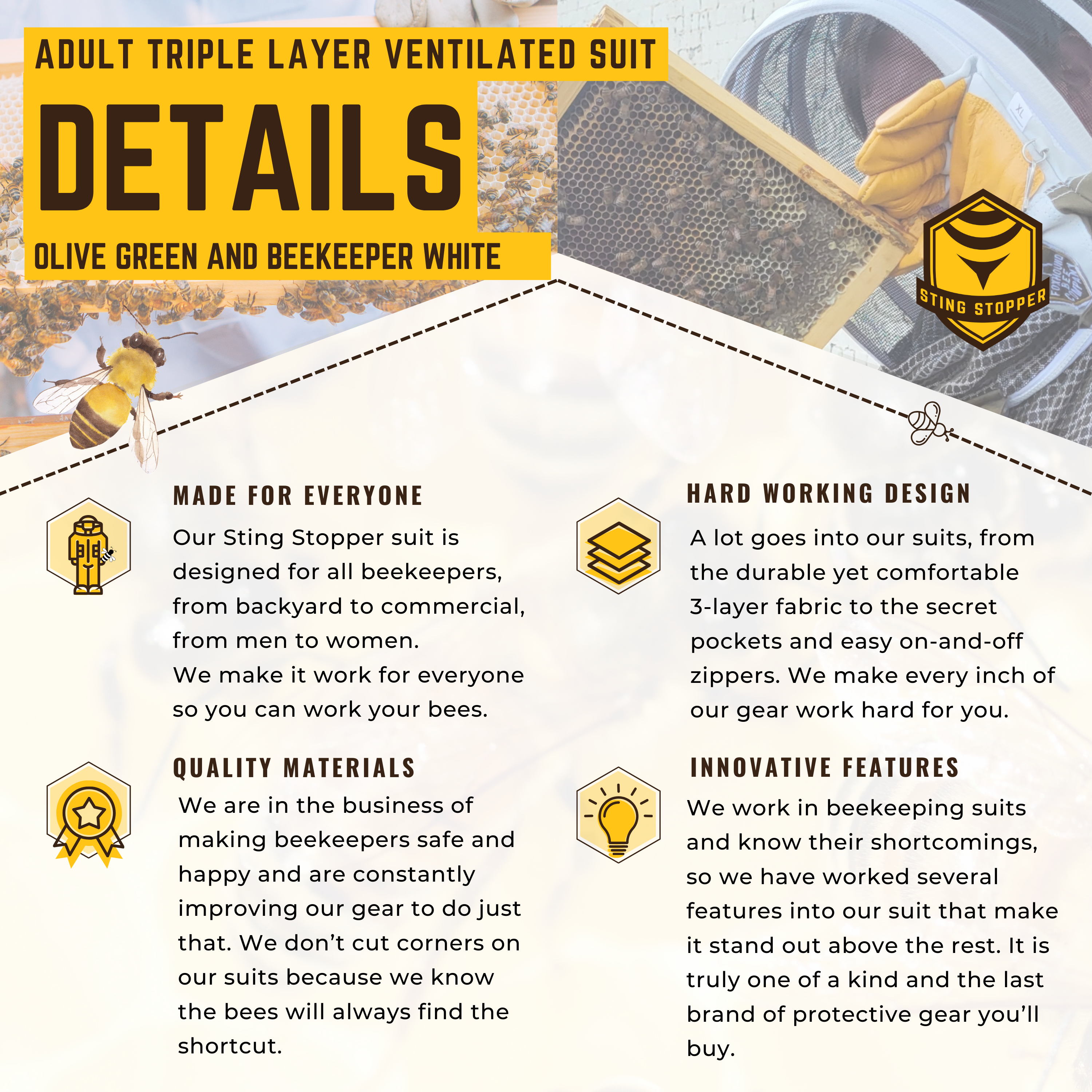 Sting Stopper Professional Ventilated Beekeeping Suit Olive Green Foxhound Bee Company